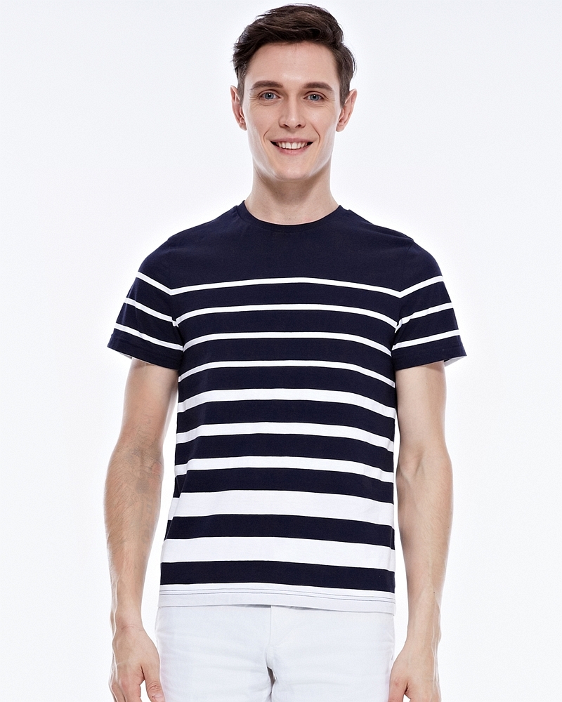 男裝條紋圓領T恤