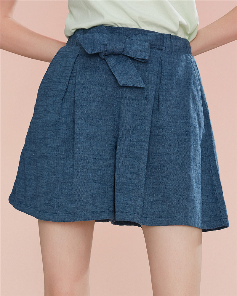 女裝麻棉A字型系帶短褲
